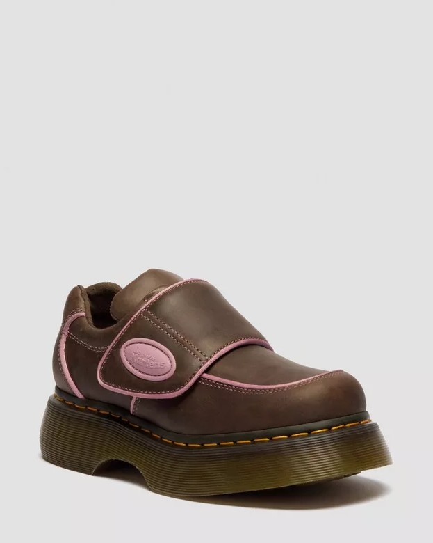 The Buzz Strap Velcro shoe updates our 90s archive energy in dark brown Wyoming leather, accented with dusty rose piping. Sport-inspired panelling and a padded heel and tongue keep things comfortable, while the adjustable Velcro strap locks in a perfect fit. Standing on the chunky barrel-edge Buzz sole, this shoe fuses heritage grooving with air-cushioned construction for style that's grounded and ready for anything.